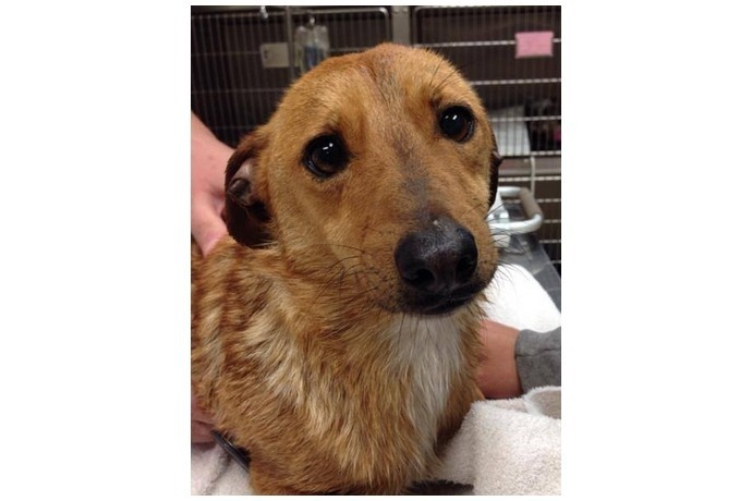 Jack, a dog displaced by the tornado in Mayflower, awaits a reunion with his people. Photo courtesy: Maumelle Friends of the Animals via Facebook.