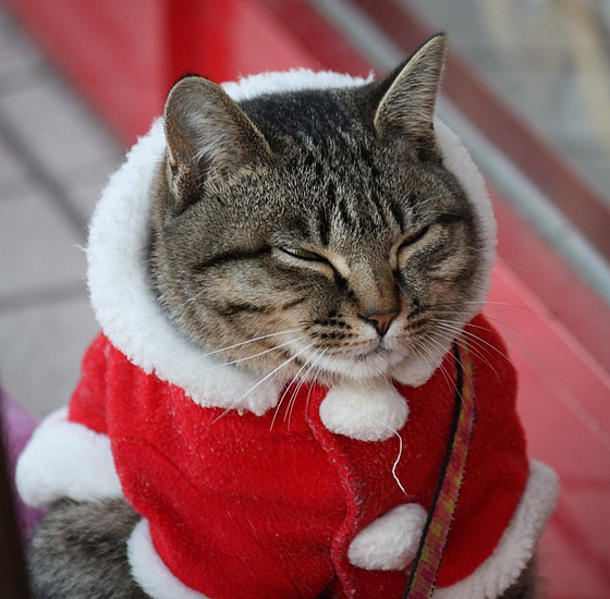 It’s getting close to Christmas, and one of the things I love most is finding pictures of cats whose owners were brave (or stupid) enough to risk putting Christmas costumes and Santa hats on them.