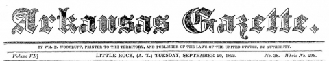 The Arkansas Gazette was a weekly at the time, and at one point ceased publication—as did many other newspapers—because of a paper shortage during the war. For consistency, Kelley writes, its editor set out rules for submissions of commentary and poetry (which we no longer print). I was able to find a fuller version of those rules and other clips from the era on a Web page compiled by Vicki Betts at the University of Texas at Tyler, with the notation that they appeared on Aug. 25, 1860.