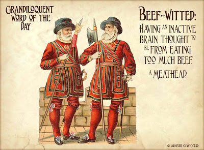 Yes, “beef-witted” is definitely joining my vocabulary. Imagine the possibilities …