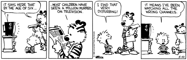 “I believe that a corrosive sense of insecurity and mistrust invites not only aggression but also repression. Fearful people are more dependent, more easily manipulated and controlled, more susceptible to deceptively simple, strong, tough measures and hard-line postures—both political and religious. They may accept and even welcome repression if it promises to relieve their insecurities. That is the deeper problem of violence-laden television.”