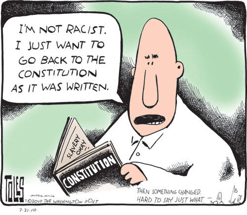 ♦ Inability to remember how government is supposed to work. Saying you love the Constitution is all that matters; you need not know what it actually does or says. Civics class was a bore (if you actually even went), and why would it possibly be important to know the branches of government, or what the members of each branch can and can’t do? You certainly don’t need to know the importance of an independent judiciary, or the differences between freedom of the press and freedom of speech (or that it applies to what the government is permitted, or not, to do, rather than private entities). Boring!