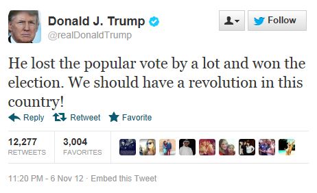 Well, if he said so in 2012 … this tweet (which was incorrect) was later deleted and later tweets called for marching on Washington.