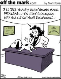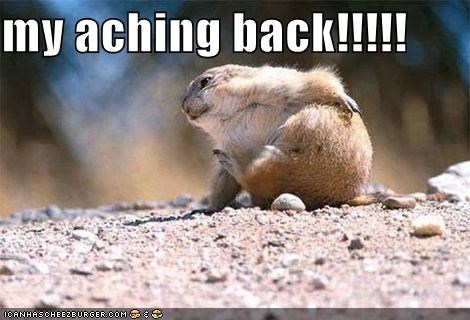 March 26, 2017 Sunday sore Sort of how I’ve been walking around lately. Muscle spasms are a laugh riot!Image found on Pinterest. For the past couple of weeks, I’ve been dealing with back spasms for much of each day, so much so that I’m exhausted at the end of the day. My furry masseur isn’t doing me much good, but maybe a few laughs will. Just ignore any yelps of pain. It couldn’t have anything to do with the searing pain in my back …Image found on Pinterest. I always knew that was a bad idea, Snoopy … and how the hell did you stay up there in the first place?Off the Mark by Mark Parisi. Bad backs don’t make for much jocularity. Image found on MemeSuper. It would make me feel oh so much better!Image found on Massage With Martin. Uh, no, Uncle Joe … step away from the shoulders.Image found on Gawker. Ah, yeah, that’s what I need! A little lower, please …GIF found on Tenor. Posted in General goofiness Tagged bad day, fuzzy-belly therapy 6 Comments