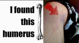Or if it’s in actual conversation, they walk away, as I did quite a bit when I shattered my humerus back in 2009 (no, it’s still not humorous). There are only so many puns even the hardiest word nerd can take.