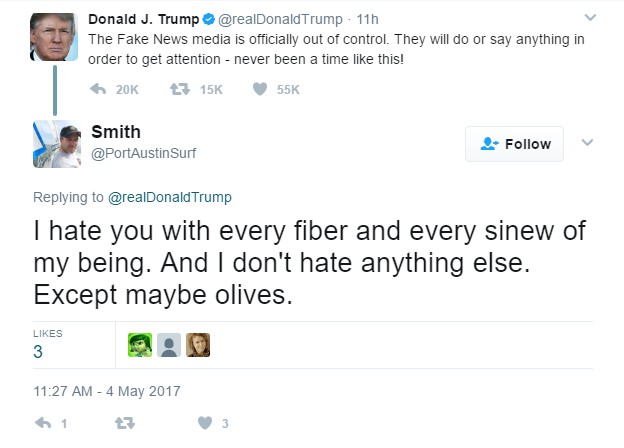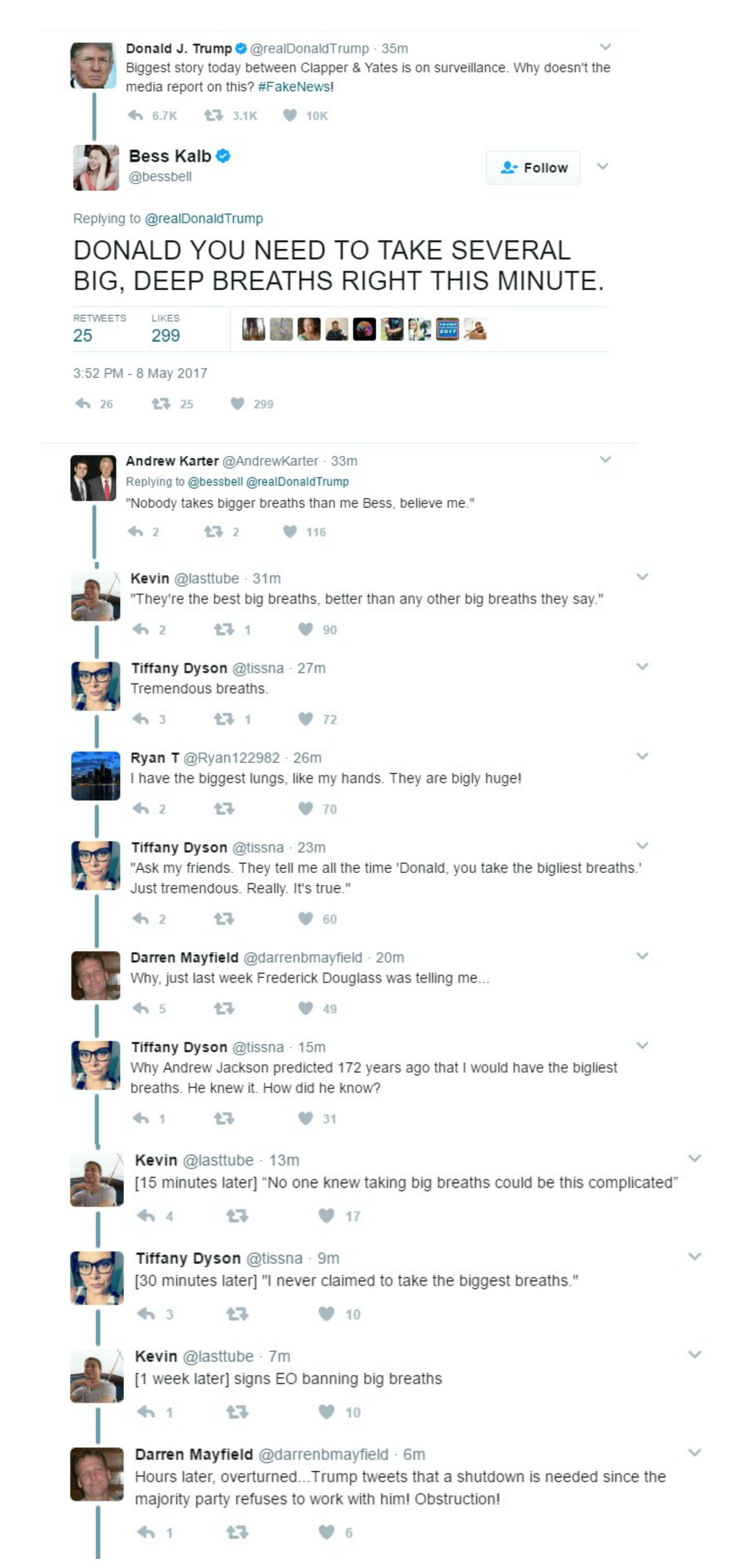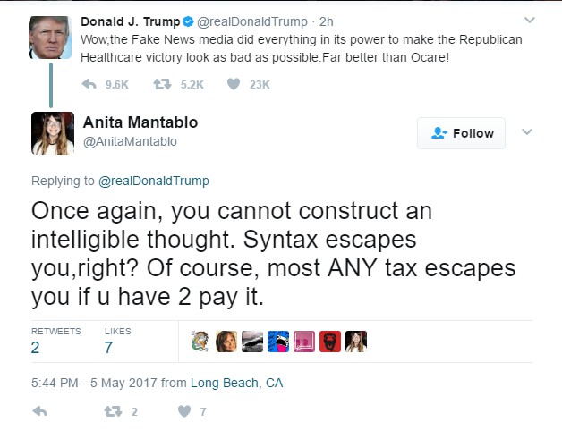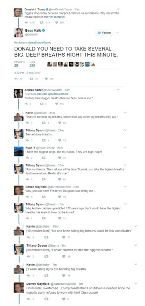 This week’s Twitter burns cracked me up for a lot of reasons. Whether it’s “fake news” fighting back or a massive Twitter story constructed line by line, I found much to laugh about this week on that certain person’s Twitter feed (and this was even before his Monday rants on Sally Yates and James Clapper!).