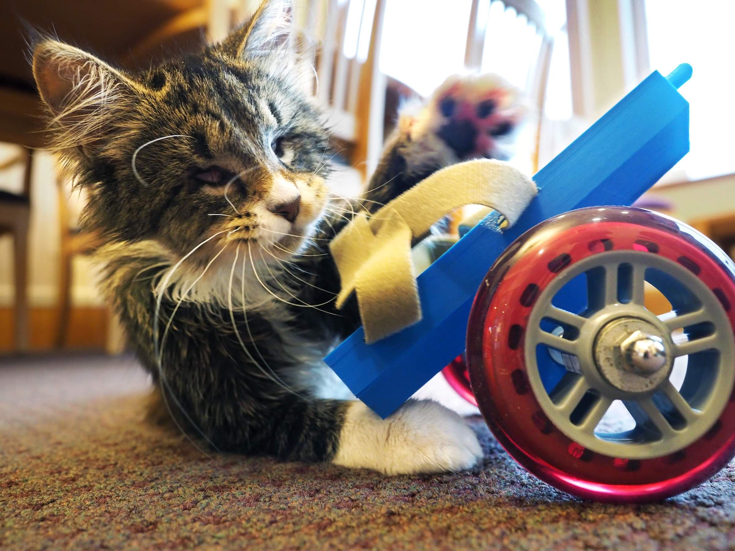 🐈 Some New Hampshire eighth-graders designed a 3D-printed wheelchair for a kitten with a spinal condition that affects his ability to walk. Ray, who is also blind because he was born with abnormally small eyes, has already outgrown the first design, but the kids are testing a new one.