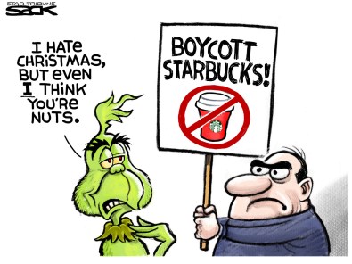 I don’t like Starbucks since I don’t drink coffee (and their cocoa’s not that great). But I’m sorely tempted to go just because their holiday cups drive some people nuts.