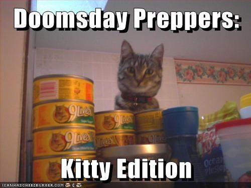 3. That cat in the Doomsday Preppers: Kitty Edition picture is definitely ready with all of those cans of cat food. It won’t have to catch its own food. Instead, I guess the cat expects its human servant to open the cans and feed it.