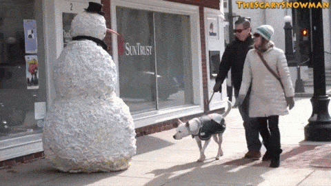 Yeah, pup, I don’t blame you. That snowman’s a creep. GIF found on PetCube.