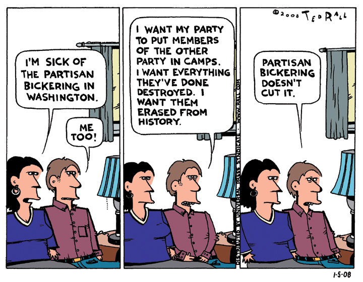 Healthy partisanship, along with give and take for the greater good, is important to democracy. However, what we have now is far from healthy.