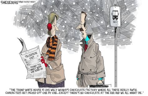 On another topic entirely, it appears someone resembling a rancid Cheeto is spiraling, all the while claiming there’s no chaos around him (and created by him). This cartoon pretty much sums up the whole mess as far as I’m concerned.