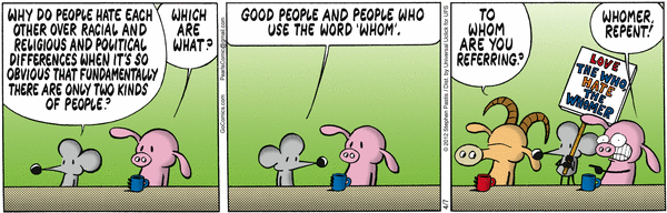 I refer to the whomers as grammar snobs. Sometimes you have to relax a little bit and not sound so much like a prig.