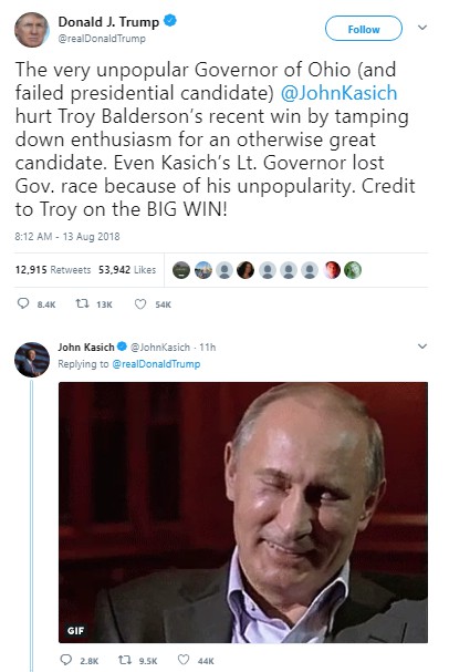 OK, I couldn’t help giggling when I saw this. More unexpected people haven’t been unable to resist the urge to troll a certain person. When someone as staid as John Kasich joins in, the end could be near. 😉