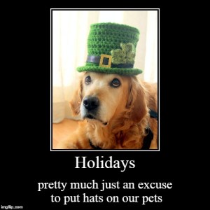 I don’t have any green clothes and I don’t have to pretend to be Irish or part-Irish because some of my ancestors came here from Ireland. My grandmother’s original surname was “Malone” before she married my grandfather and Malone is an Irish surname. Also, I have tried Irish beer (Guinness) and whiskey (both Jameson’s and Tullamore Dew). I didn’t like either one.