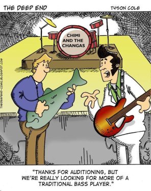 Playing this kind of bass will get you a lot of groupies. They’re cats, but that counts.