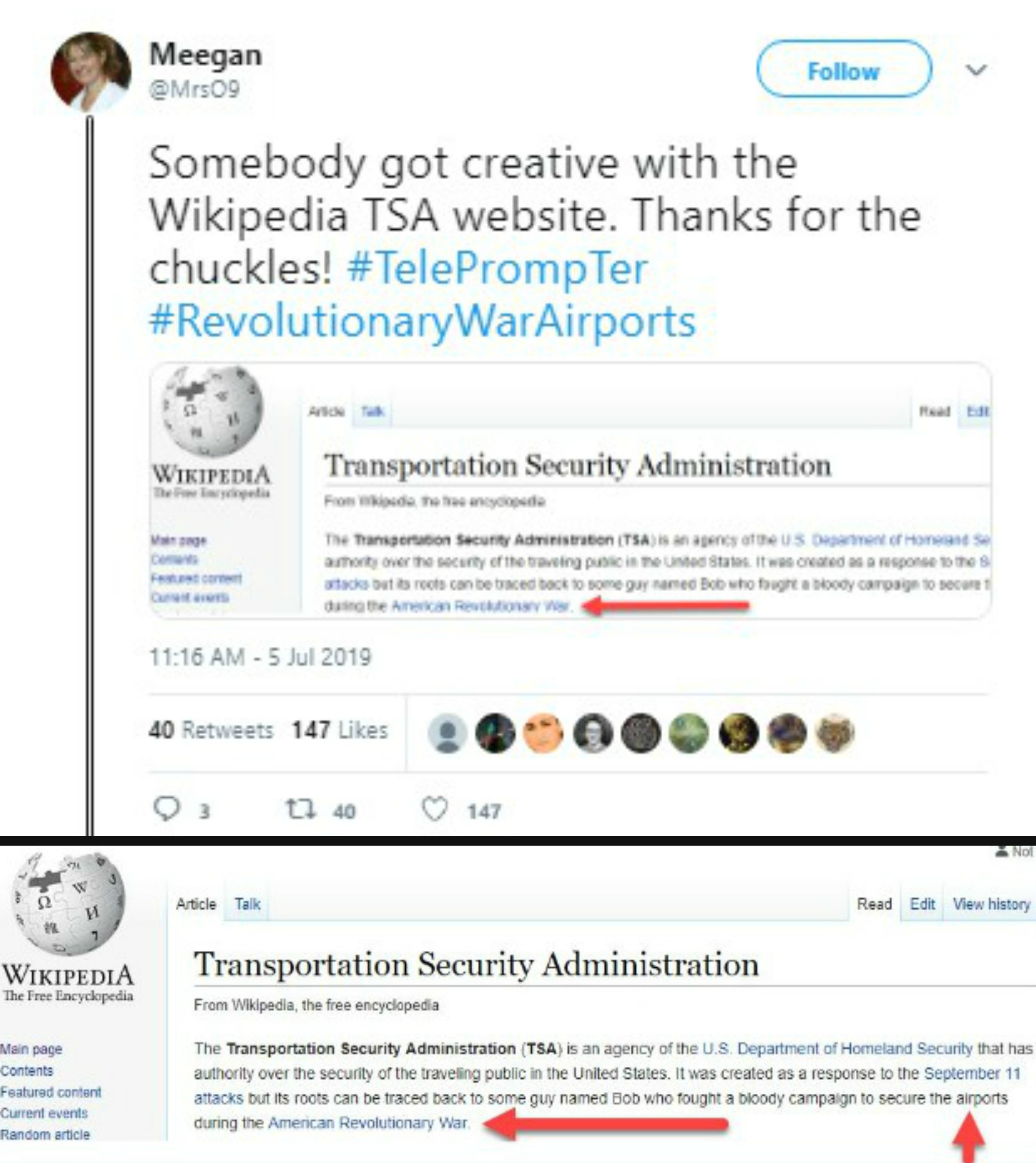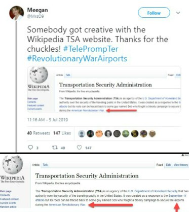The TSA page was also edited on Wikipedia. Gotta watch out for guys named Bob. Click for larger image.