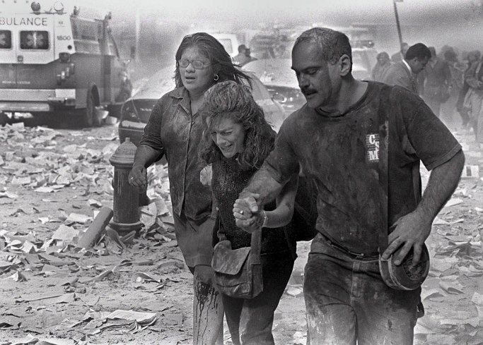 Survivors flee ground zero after the collapse of the World Trade Center towers.