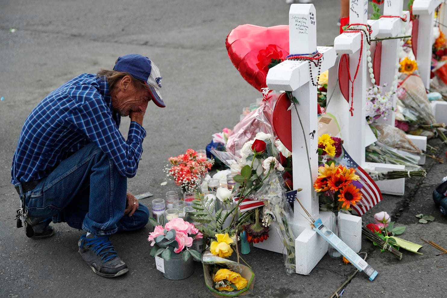 Antonio Basco mourns his wife at a makeshift memorial for the El Paso mass shooting victims.
