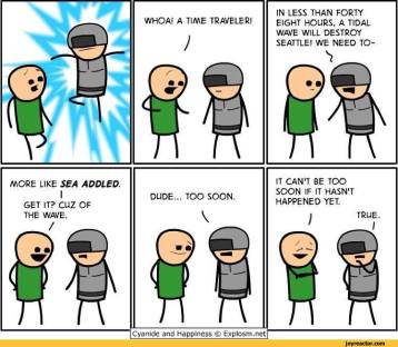Time Travel? I’m from 1938. Does that count? All in all, I find time travel is slower than you might imagine.