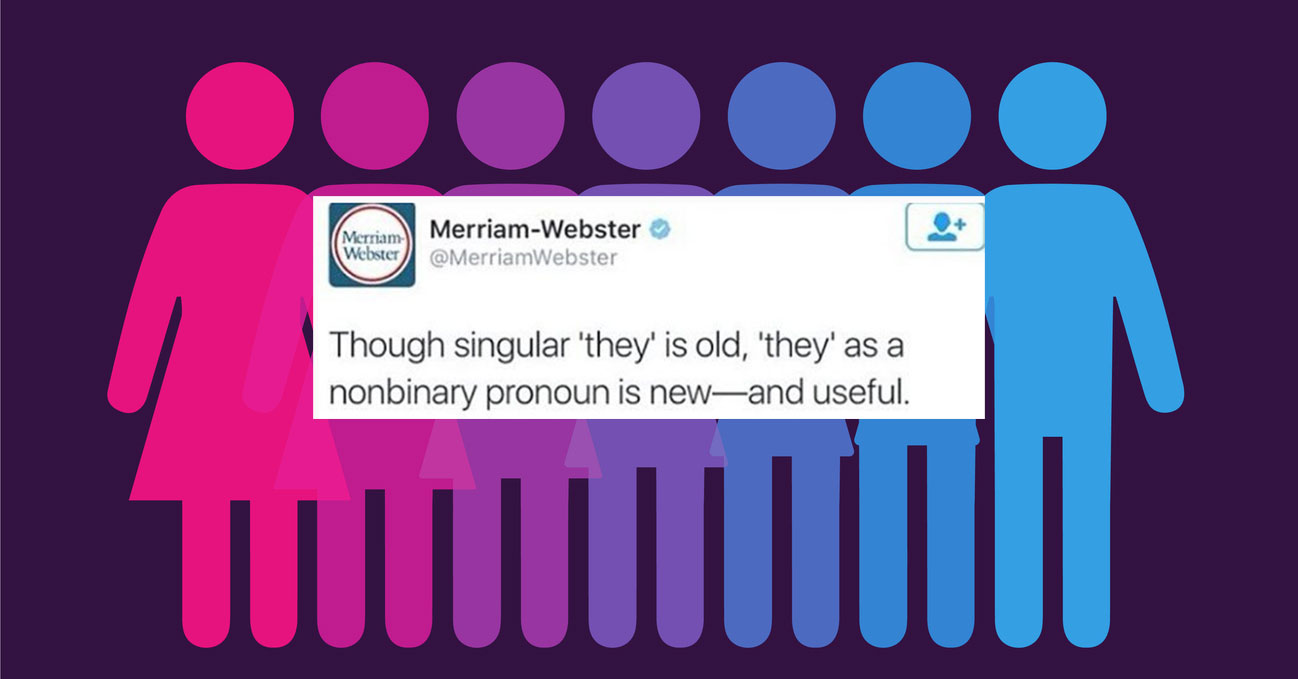 Part of the renewed interest in they comes from its use as a pronoun for people who identify as nonbinary—“relating to or being a person who identifies with or expresses a gender identity that is neither entirely male nor entirely female,” according to Merriam-Webster—but it’s also because “English famously lacks a gender-neutral singular pronoun to correspond neatly with singular pronouns like everyone or someone, and as a consequence they has been used for this purpose for over 600 years.”