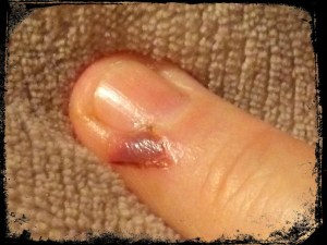 This was after the finger had healed a bit. It wasn’t till about a week afterwards that I discovered I’d sliced through the nail as well. So yeah, I cussed.