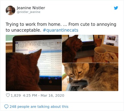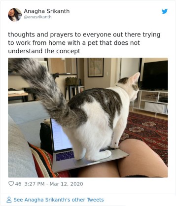 While I’ve already tired of working remotely, Slack has provided more than a few laughs, with co-workers sharing photos of their new bosses at home. By the end of next week, more of the photos might look like these.