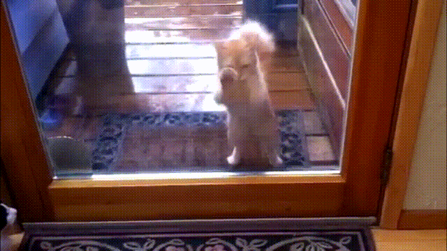 The dog locked me out. Let me in!!! GIF found on WiffleGif.