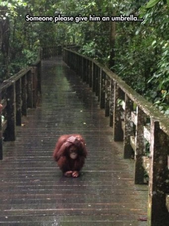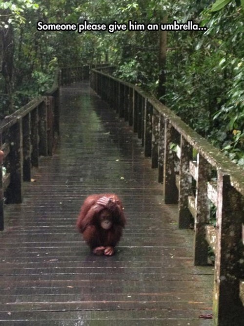 His umbrella was last seen in the paws of a squirrel. Image found on cheezburger.