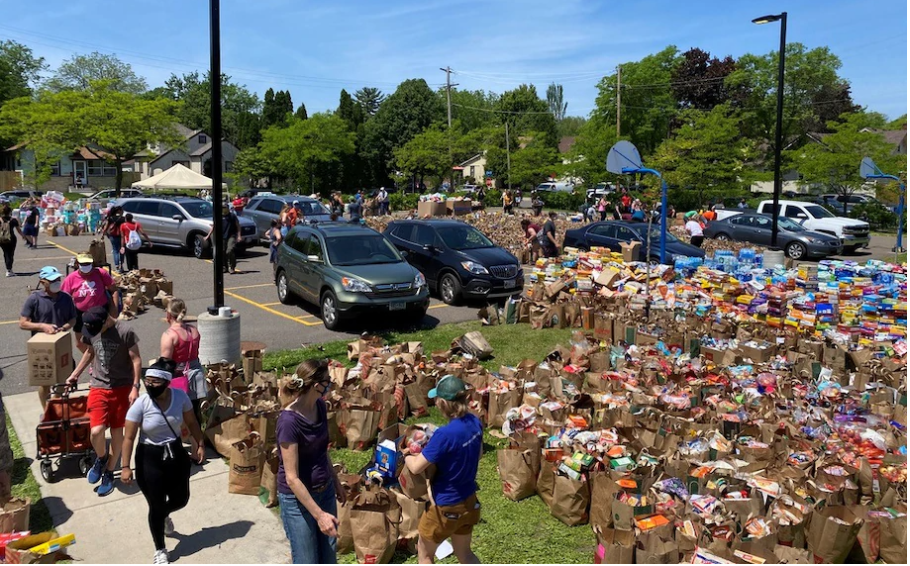 “Soon, the school property was covered with thousands of bags of groceries. By the end of the day, an estimated 30,000 food kits were delivered, and more than 500 families and individuals were able to stock their pantries and fridges.”