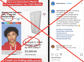 Does child sex trafficking exist? Unfortunately, yes, and it has for years, but there is no evidence that these wild conspiracy theories are true. Worse, as Annie Reneau of Upworthy points out, politicizing the trafficking issue and/or tying it to kooky conspiracy theories hurts the cause of fighting it, as energies are then directed toward false narratives. Legitimate anti-trafficking organizations like the Polaris Project or Operation Underground Railroad might have their hot lines tied up with reports about, say, Wayfair supposedly selling children on its site (it’s not) , and not be able to answer calls about what’s happening in reality.