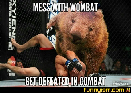 So, yeah, we know I’m sort of easily amused by word play. Still, you have to admit that Trial by Wombat would probably be pretty cool. If anyone’s looking for a birthday present for me, there’s an idea. Enjoy some wombats, my friends.