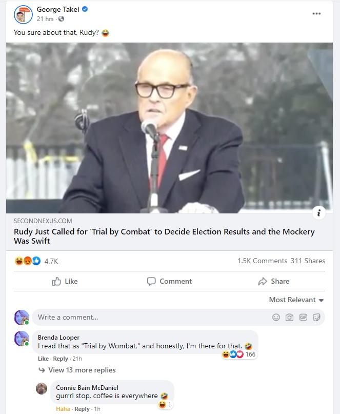 Apparently my mind telling me that what I read said something else struck a chord with a lot of people. My favorite comment, though, might have been the one from Bjorn Schulz, who included this GIF (which makes me laugh every time I see it), with “MORTAL WOMBAT!”