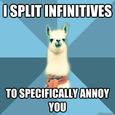 Cognitive scientist and linguist Steven Pinker wrote in The Guardian in 2014 about some of the grammar rules you can ignore in most cases, including the one on infinitives (which would distress one of my colleagues, who says if someone she dates splits an infinitive, she splits). Pinker says it’s OK to flout those rules if the answer to any of these questions is “yes”: