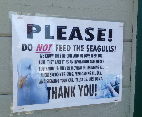 Wait … seagulls or teenagers? Image found on Funny Signs.