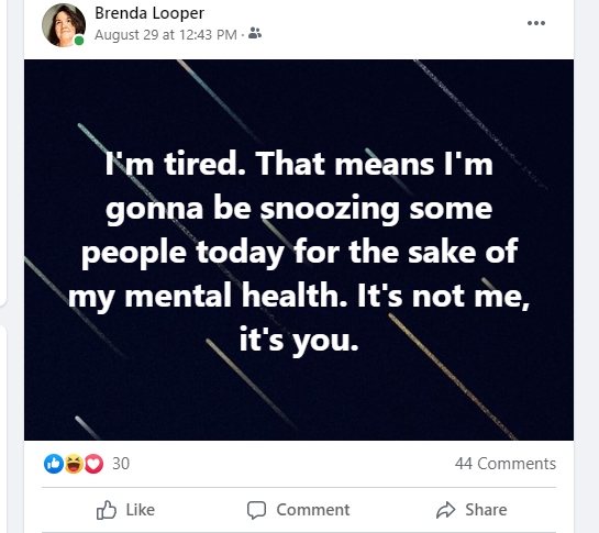 I told that former friend who had indeed revealed his true self, after he repeatedly harangued me and anyone agreeing with me: “It’s called taking control of your mental health. It’s much better to cut yourself off from misinformation, disinformation and negative attitudes than to lower yourself to the level of people who can only rag on everyone they disagree with because they have nothing positive to say.”