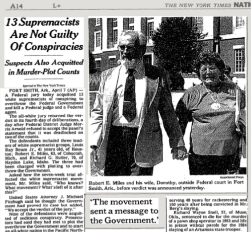 Sedition charges are rarely levied, and it takes time to investigate and build a winnable case. The Justice Department has had a mixed record on the few sedition charges it’s levied, including in the 1988 trial in Fort Smith where 13 white supremacists were acquitted. (Fourteen were originally indicted, with charges dismissed against one. KKK members and leaders like Thom Robb and neo-Nazis made a “tour” around the area to try to make the case they were being persecuted. If I remember correctly, they were egged in the town where I went to school; only time I was ever proud of that place.)