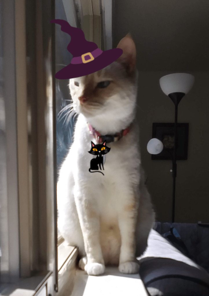This is the closest I’ll get to dressing Charlie up. While I managed a few hats with Luke, I don’t like my chances here. “Costume” added on Fotor.