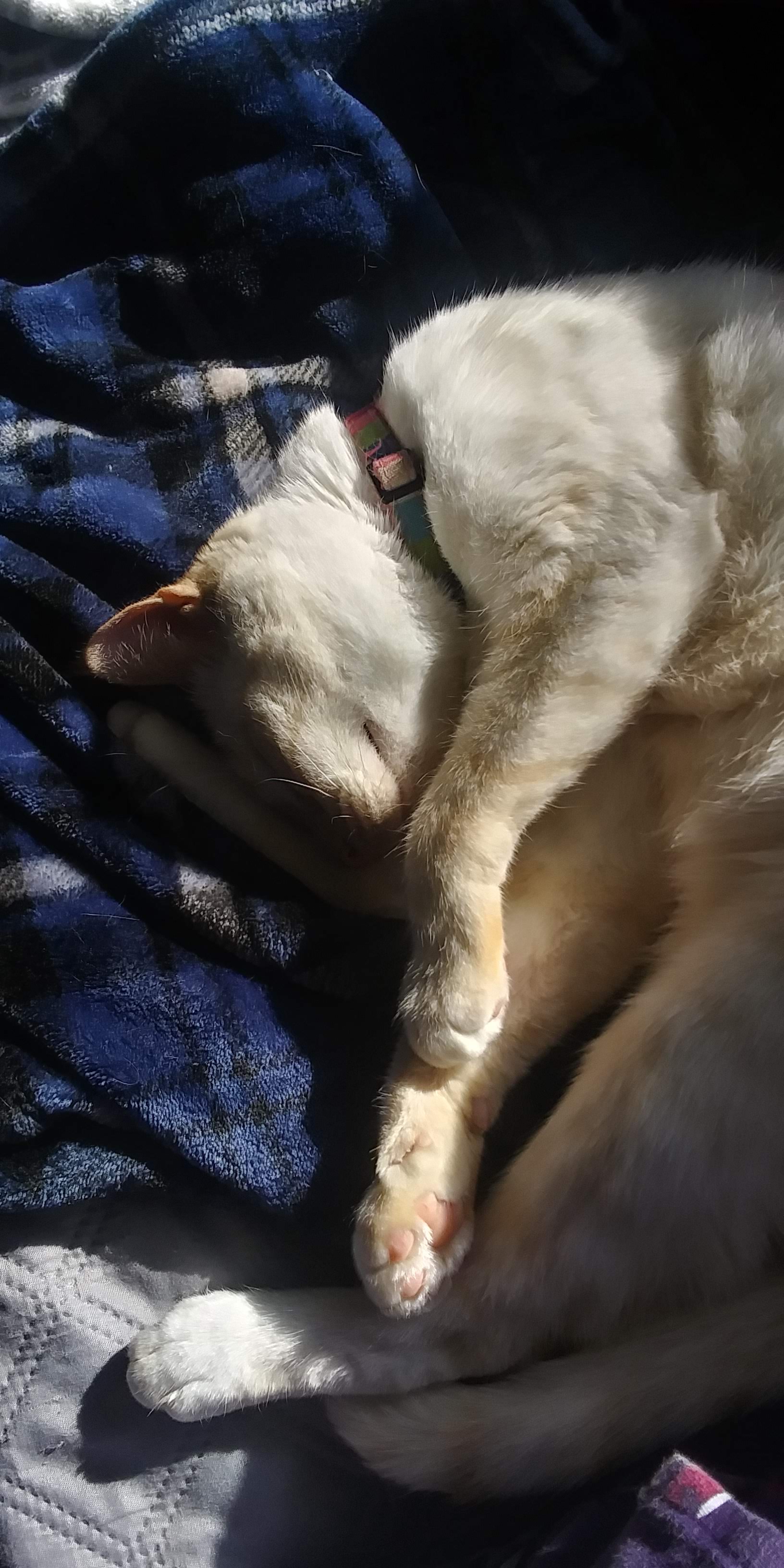 🐱 Spent more time with fur-nephew Charlie. The boy was discombobulated, having been stuck with Aunt Brenda while his mom was in Florida, and then having Mom return midweek, so he wasn’t quite sure what to do with himself. And then Aunt Brenda noticed a wound on his butt (I swear, I don’t intentionally look at cat butts) that meant he’d have to go to the vet to address it (and now he has a partially shaved butt and a staple). Poor little guy … but at least he’s feeling better now, and even more lovey. Plus he has two new chairs in the living room to lounge in, thanks to Aunt Kathy (with an assist from Aunt Brenda). That won’t make up for being banned from going outside for the time being, but it’s a start.
