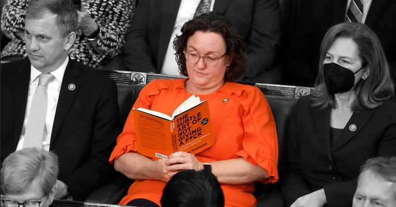 Is it any wonder there were bags and cans of popcorn on the floor (no alcohol, though, despite the accusation by Kat Cammack of Florida in her McCarthy nomination speech in the sixth round) toted by Democrats, plus a book with a not-appropriate-for-a-family-newspaper title being read by Katie Porter of California? (Have I mentioned lately how much I love Katie Porter’s shade-throwing and CEO-owning?)