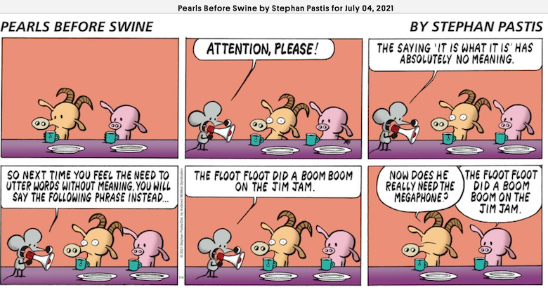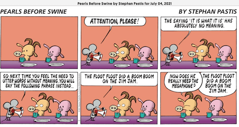 Joel Wilson of Highfill successfully called one of the phrases on this year’s list, writing to me last month, “I would rather tear up $20 bills in a cold shower than hear ‘It is what it is’ one more time. I did not like it the first time and I don’t like it now. The last couple years have been full of ‘it ain’t what it is’ and ‘it is what it ain’t.’”