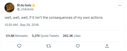 Well, well, well, if it isn’t the consequences of my own actions.—Musician lil du bois on Twitter, Sept. 29, 2018
