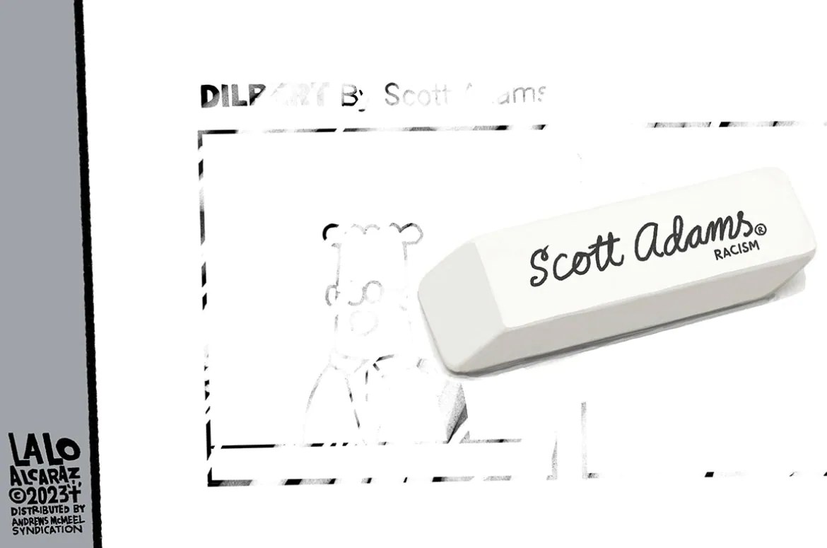 Michael Cavna, also of The Post, wrote in a story published Monday, “In covering the controversy, Mike Peterson, columnist for the industry blog the Daily Cartoonist, wrote Monday that what ‘doomed’ Adams was that he ‘let his increasingly antisocial personal views appear in the strip.’ Peterson added that in Dilbert, ‘the focus on management foibles had long since gone stale and the new material was off-topic and not just conservative — a lot of strips are conservative — but openly offensive.’