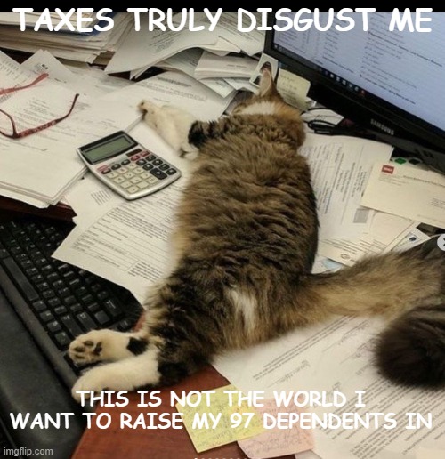 Maybe this is why I haven’t really done many “side gigs” … dealing with income from one source is about all I can deal with. That and I’m tired. Image found on cheezburger.