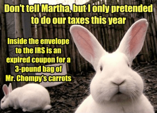 So, Bonnie here says I don’t have to pay taxes this year. I’m not sure I believe her. Image found on SwapMeetDave.
