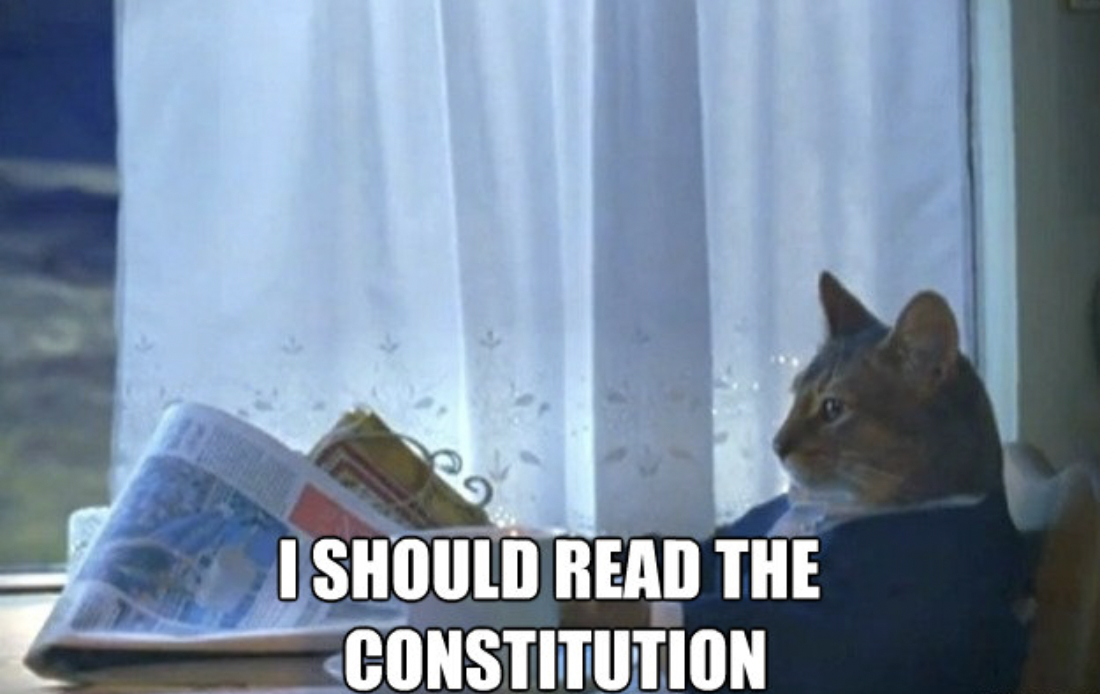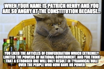 Well, thank Patrick Henry, because he’s part of the reason the Bill of Rights was added. Image found on Meme Creator.