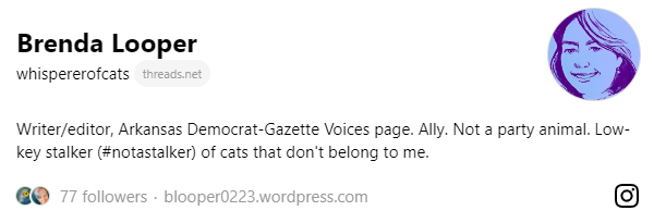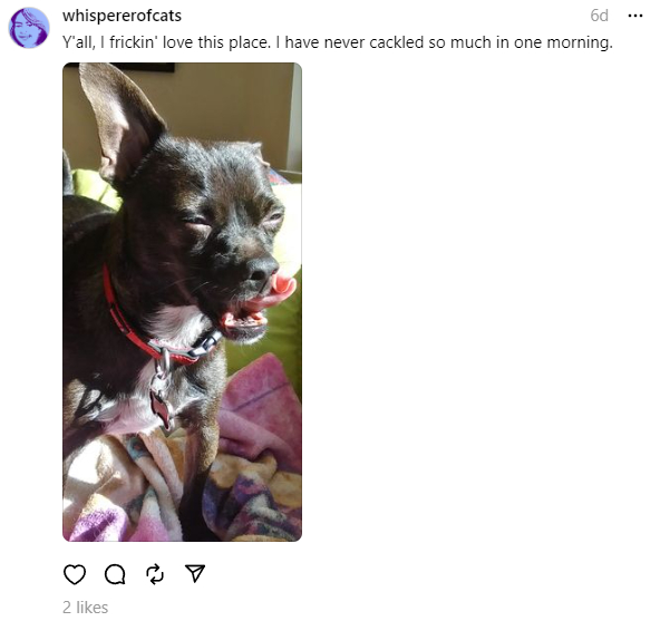 For now, though, I’m most impressed with the community on Threads, which seems to have more than its share of creatives (writers, artists, photographers, musicians, artisans, comedians, actors/performers), activists (for issues spanning the spectrum), book lovers and animal lovers (heavy on the cats, but hey, highland cows and otters, too!).