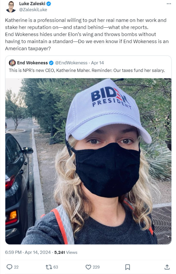 Luke Zaleski, Conde Nast legal affairs editor, often highlights End Wokeness’ anonymity. Screenshot from Luke Zaleski’s X/Twitter page.