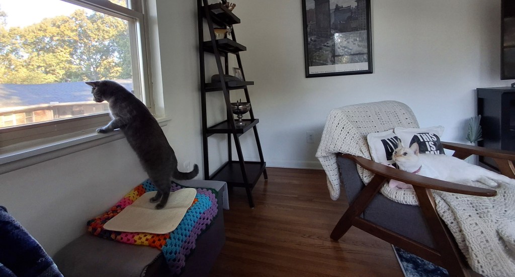A few of the cats I sit have a fascination with the stove, so it’s always a good idea to employ caution. Fur-nephew Ollie has been known to sit on the stove at his soon-to-be-former home and watch the flames under a pan (the new apartment has an electric cooktop). At another house, the pilot light is off on the stovetop because the cats have the tendency to want to explore the burners and check pans for any tasty bits left behind. (Lighting individual burners when needed isn’t that big a deal, especially when you consider the alternative.)