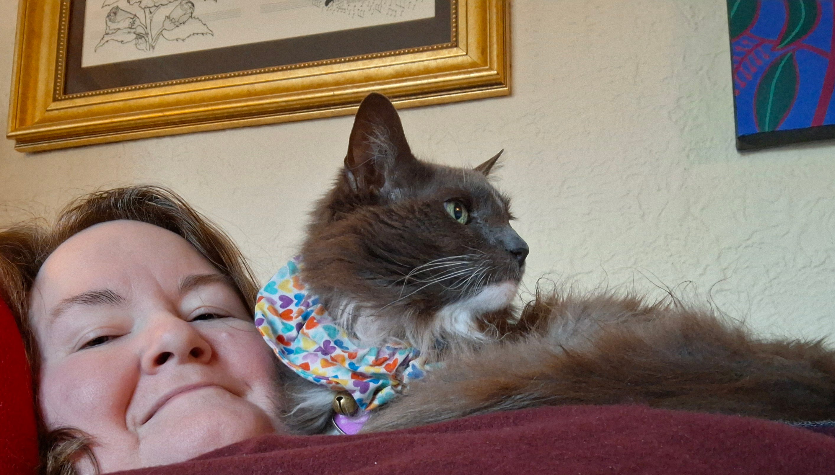 🐈⬛ Cuddle Your Pet Day. Nothing brings down my blood pressure quicker than cuddling with one of my sweet fur-nieces or nephews. And if I don’t have any of them available at a given moment, I always have pictures of them to look at and recall their goofy and sweet antics. At some point I’ll get around to getting a new cat or three of my own (Luke is a nearly impossible act to follow), but for now, this’ll do. Cat/house-sitting is an excellent alternative to being responsible for care 24/7/365; while I took care of Luke with a broken arm and after a stroke, it was a lot sometimes, especially where the litter box was concerned. It was a good thing some days that he was beautiful and funny.